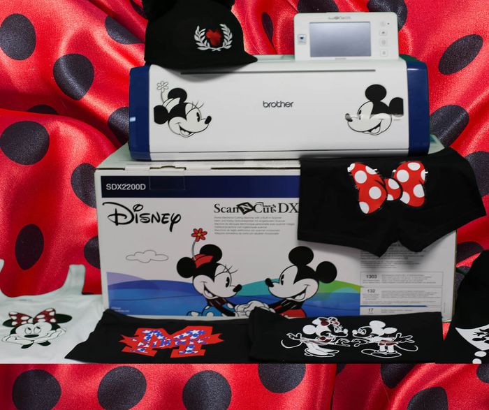 ScanNCut DX, the only cutting machine with a built-in scanner and blade sensor technology now comes with the magic of Disney. Cut card, self-adhesive vinyl, felt, leather and foam with the Auto Blade that automatically detects the thickness of your material. No PC required. Edit cut data on the 5 inch LCD touch screen display. Reads SVG cutting files and PES embroidery files. Convert embroidery designs to cut data directly on the machine. Cuts up to 3mm. Ready to cut, 1435 built-in designs (132 feature Disney characters), 17 built-in fonts. USB port for storing and importing files. Wireless network ready. SDX2200D comes with Rhinestone Trial Kit, Universal Pen Holder, Roll Feeder and Carry Bag plus accessories for drawing, cutting fabrics and making fabric appliques.