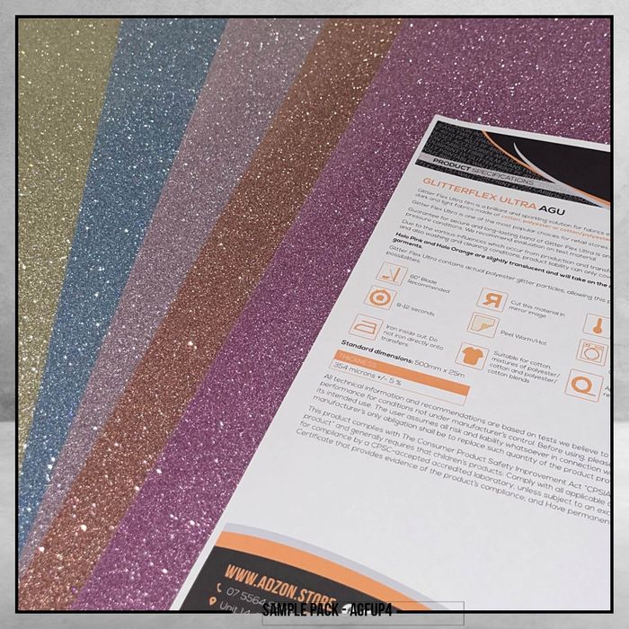 Glitter Flex Ultra Sample Pack - 5 sheets of HTV - 30cm x 50cm: Champagne, Rose Gold, Bubblegum, Periwinkle, Blush